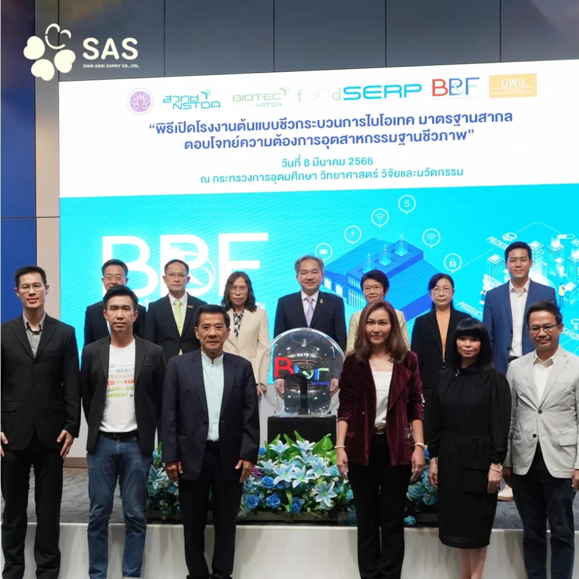 บริษัท สยาม อะกริ ซัพพลาย จำกัด หรือ SAS หนึ่งในผู้นำด้านเทคโนโลยีชีวภาพสาขาจุลินทรีย์ นำโดยคณะกรรมการผู้จัดการ คุณกฤษดา จันทร์เจือมาศ และทีมงานผลิตภัณฑ์เสริมอาหารโพรไบโอติกภายใต้แบนรด์ bioCRAFT รู้สึกยินดีและเป็นเกียรติอย่างยิ่งที่ได้รับเชิญเข้าร่วมงานเปิดตัวโรงงานต้นแบบชีวกระบวนการไบโอเทค (BIOTEC Bioprocessing Facility BBF) ซึ่งเป็นโครงสร้างพื้นฐานที่สำคัญสำหรับการดำเนินงานวิจัยด้านการใช้ประโยชน์จากจุลินทรีย์ในระดับกึ่งอุตสาหกรรมที่ได้รับมาตรฐานระดับสากลอย่าง Codex GHPs และ HACCP รองรับการทำวิจัยร่วมกับภาคเอกชน และงานให้บริการ เพื่อตอบโจทย์ความต้องการของภาคอุตสาหกรรม และเร่งผลักดันการนำงานวิจัยไปใช้ประโยชน์เชิงพาณิชย์ ช่วยขับเคลื่อนเศรษฐกิจของประเทศ ไปสู่เป้าหมายการพัฒนาที่ยั่งยืนตามนโยบายโมเดลเศรษฐกิจ BCG (Bio Circular Green Economy)  จากสำนักงานพัฒนาวิทยาศาสตร์และเทคโนโลยีแห่งชาติ หรือ สวทช. ณ กระทรวงการอุดมศึกษา วิทยาศาสตร์  วิจัยและนวัตกรรม กทม. อาคารพระจุลจอมเกล้า ชั้น 1