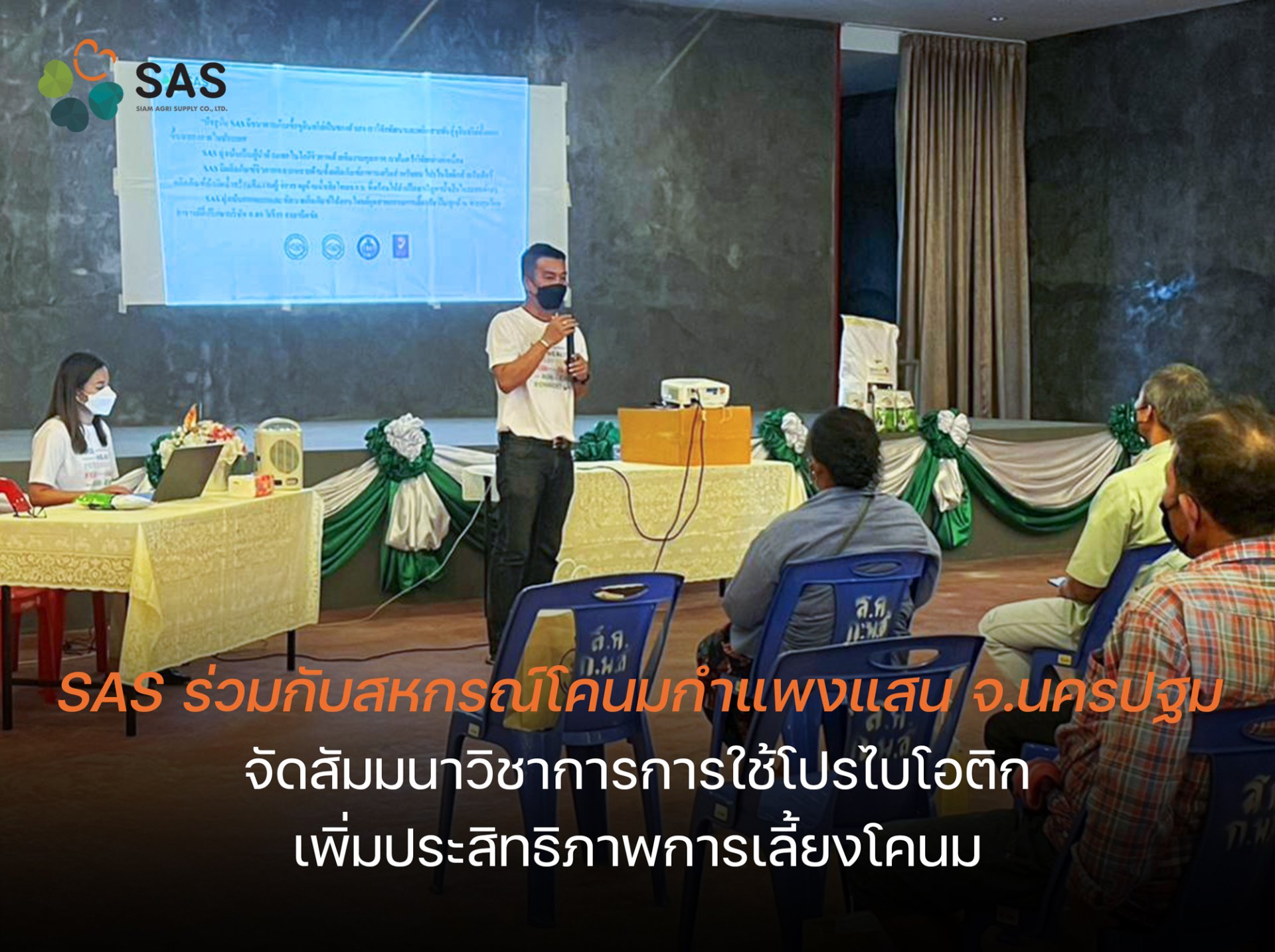 บริษัท สยาม อะกริ ซัพพลาย จำกัด หรือ SAS ร่วมกับ สหกรณ์โคนมกำแพงแสน จังหวัดนครปฐม จัดสัมมนาวิชาการหัวข้อ การใช้จุลินทรีย์โปรไบโอติกเพื่อเพิ่มประสิทธิภาพการเลี้ยงโคนม เมื่อวันที่ 6 ตุลาคม 2565 ณ ห้องประชุมสหกรณ์โคนมกำแพงแสน จังหวัดนครปฐม โดยมีนักวิชาการเฉพาะทางสำหรับสัตว์บกทางบริษัท สยาม อะกริ ซัพพลาย จำกัด ให้ความรู้ คำแนะนำแก่เกษตรกรที่เลี้ยงโคนมถึงวิธีการแก้ไขปัญหาคุณภาพน้ำนมที่ไม่ถึงตามเกณฑ์ด้วยการเสริมโปรไบโอติก นวัตกรรมจุลินทรีย์จากธรรมชาติเพื่อลดปริมาณโซมาติกเซลล์ในน้ำนม ลดปัญหาเต้านมอักเสบในแม่โคนม และสุขภาพที่ยังยืนในระยะยาว รวมถึงแลกเปลี่ยนความรู้กับเกษตรกรภายในงานสัมมนา