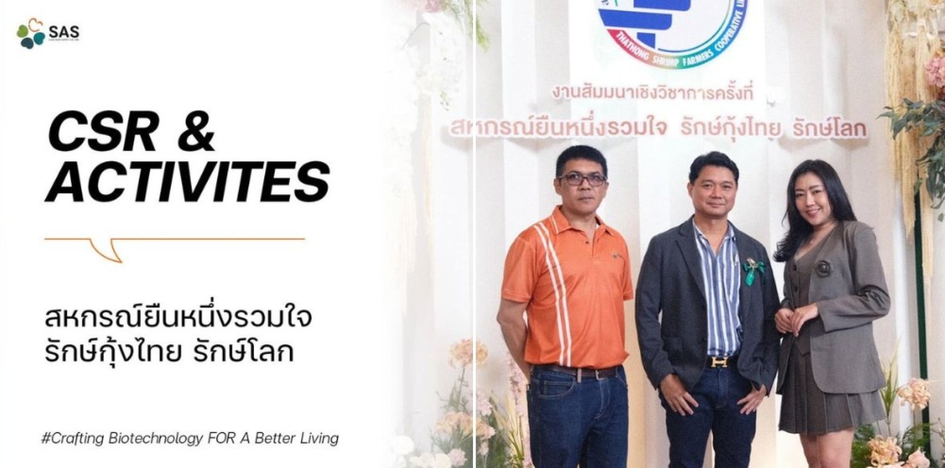 SAS ดีใจมากที่ได้เป็นส่วนหนึ่งเพื่อพี่น้องผู้เลี้ยงกุ้งอย่างยั่งยืน ด้วยนวัตกรรมเทคโนโลยีชีวภาพ ในงานสัมมนาครั้งที่ 10 "สหกรณ์ยืนหนึ่งรวมใจ รักษ์กุ้งไทย รักษ์โลก" โครงการใหญ่ที่รวมพลังความร่วมมือจากทุกภาคส่วน เพื่ออนาคตที่มั่นคง และยั่งยืนของอุตสาหกรรมกุ้งบ้านเรา