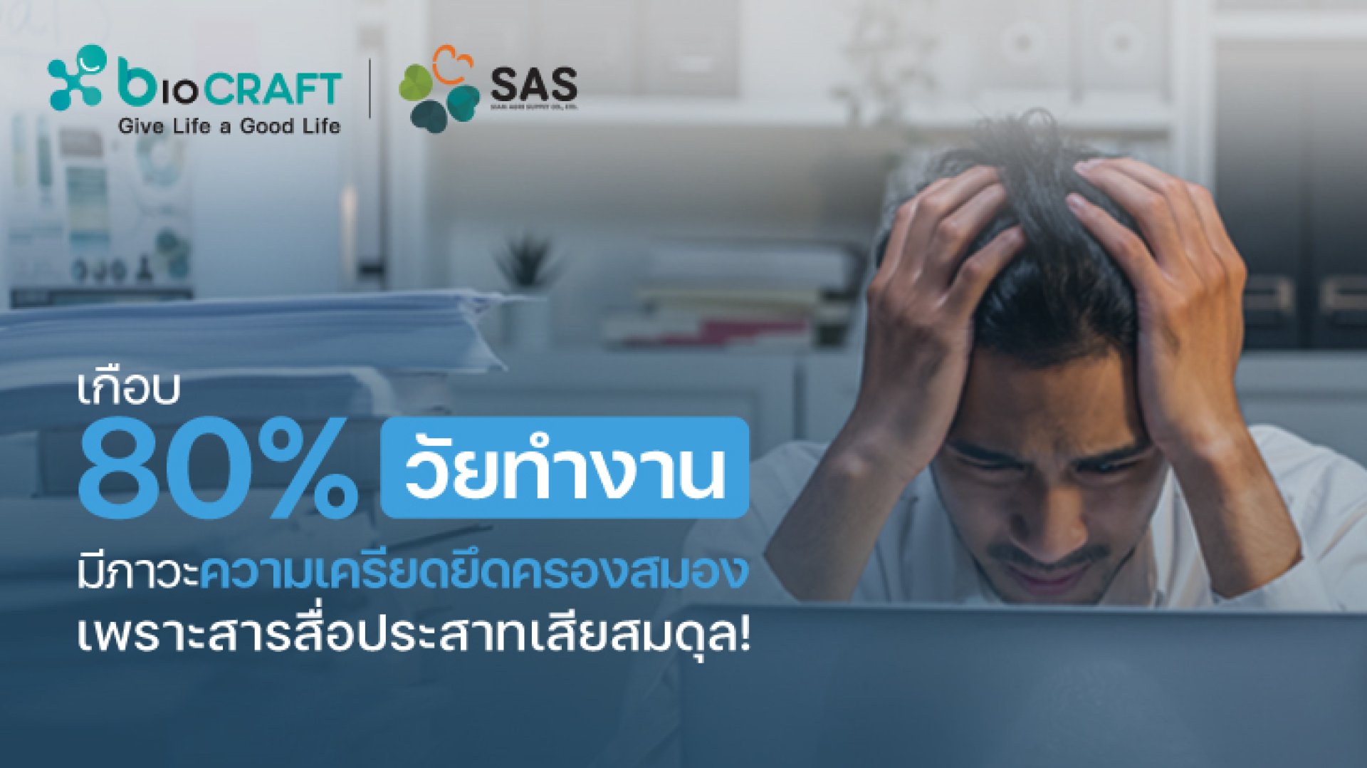 ความเครียดคือศัตรูเงียบของวัยทำงานที่เปลี่ยนสมดุลสมองทั้งระบบ แต่เราสามารถรับมือได้ด้วยการปรับวิถีชีวิต และเสริมด้วยโพรไบโอติก เพื่อให้ร่างกายและจิตใจกลับมาสมดุล พร้อมสู้กับทุกวันทำงานได้อย่างมีพลัง